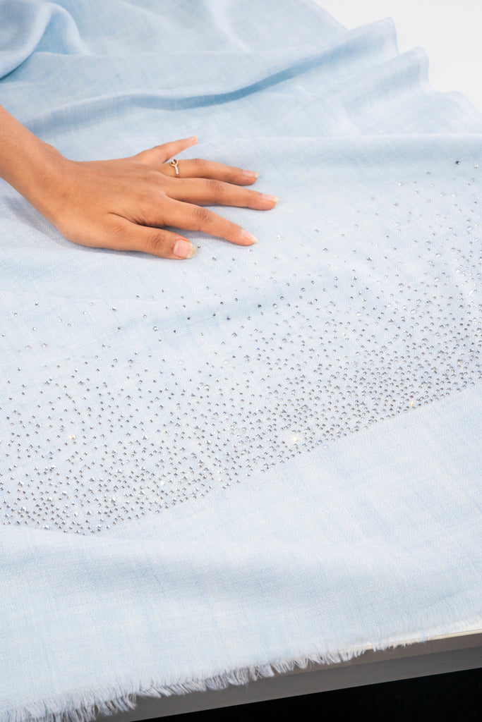 Wrap yourself in the finest of marino cashmere fibres and the sparkle of crystal embellishments.